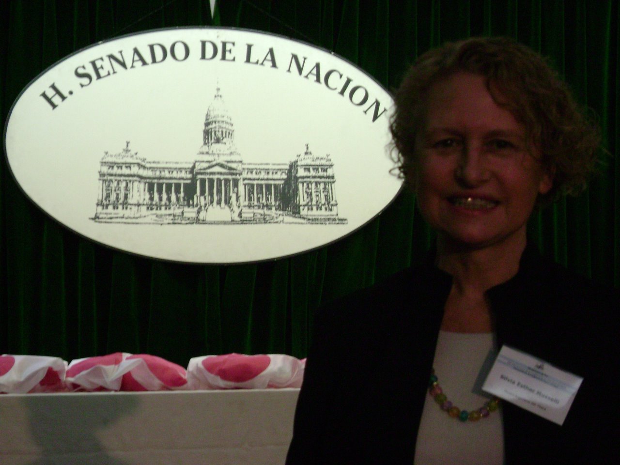 Silvia Musselli en el Senado de la Nación, momento en el que le entregaron la "Bandera de la Paz"